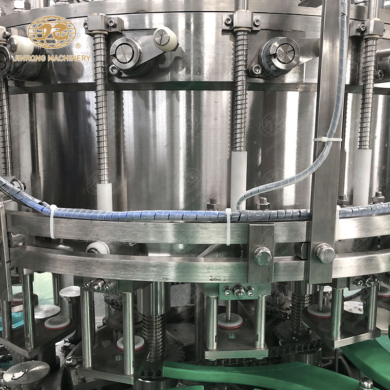 接下來是灌裝工序。在這個過程中,清洗干凈的玻璃瓶會被自動輸送到玻璃瓶碳酸飲料灌裝機。碳酸飲料灌裝設備使用壓力控制系統,將預先調配好的碳酸飲料從儲罐中注入到玻璃瓶中。這個過程需要精確控制,以確保每個瓶子都能被正確地填滿,不會出現溢出或不足的情況。